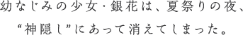 あの夜からずっと、銀花は行方知れずのまま。